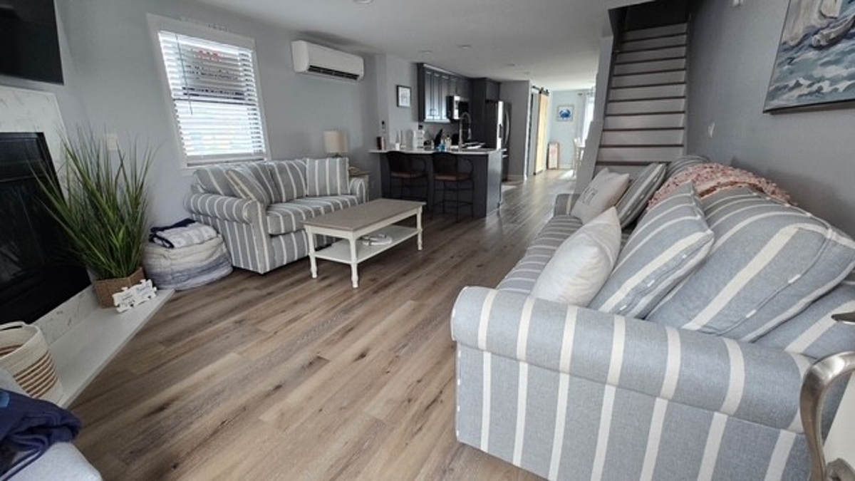 Lovely two bedroom 2 bath townhome on bay side on Coastal Highway. This townhome has been completely redone and is very nice. It has a view of the canal in the back. It has everything you need including ac from 3 mini splits, washer, dryer, dishwasher, microwave, coffee maker and 3 Smart TVs. Please be sure to bring your login info so you can get connected to your streaming services. No cable here. Easy to cross the highway to go to the beach at the traffic light on South Carolina Ave. where this property is located. You will also have a parking permit to make it even easier to get there. There are 2 sets of bunk beds here. One set has a single over a full bed. The other has 2 full beds. However the owner feels these beds are really only good for one person each.