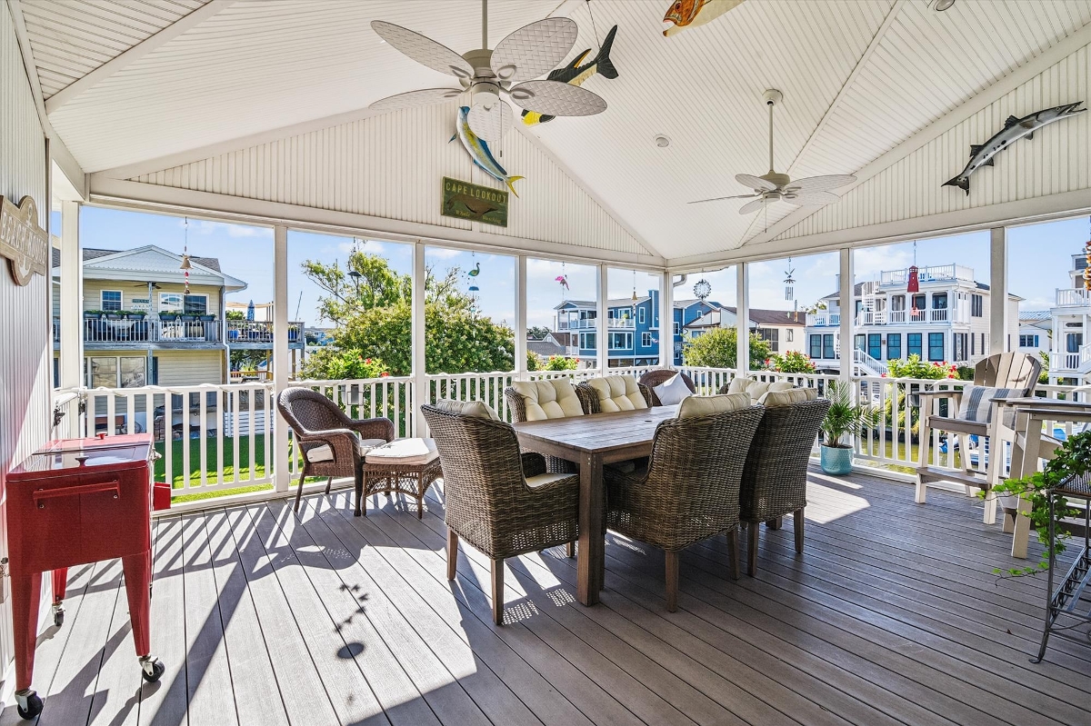 Lovely, 3 Br. 3 Ba. home will blow your socks off. Located half way down Farmington Street directly on the canal. Every amenity including a porch, open deck, and two levels of living space, internet access and 4 TV's. Great patio on the ground level, canal side of the house, will be a great spot to sit in the shade and read a book. This patio is also where you will find the outside shower, fully enclosed. Short 1.5 blocks to the lifeguarded beach and easy walking to several restaurants, including "family restaurants" and upscale fine dining. Mark this one on your list as a "must see." Click on the Link for Virtual Tour to see additional photos inside this very nice house. Not a true "virtual tour" however it works. You may have to click on each Sleeps 9 in 2 Kings, 1 Queen hide a bed, 1 D/D bunk bed with a single trundle bed (perfect "kids" room!) As with all of our properties NO smoking and NO pets.
