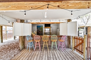 Situated on the quiet beach at the north end of Fenwick Island this ocean block bungalow has a private dedicated path behind this home and the neighbors' homes for easy beach access. Inside you will find three bedrooms. 2 bathrooms, living room, dining room, kitchen and laundry room all have been recently updated. There is also a downstairs game room with TV and mini ping pong (window ac unit) and a ground level tiki bar. This raised rancher has plenty of outdoor living space too, with a large open front deck overlooking the bay and a back deck with ocean breezes. There is also a covered sitting area adjacent to the bar for relaxing or games of cornhole. Enjoy morning sunrise walks on the beach or in the evenings you can take in the breathtaking sunsets over the bay. This home comfortably sleeps 8 in 1 Queen (primary en suite), 2 double beds (in BR 2), and double/double bunk bed (in BR 3). Central A/C, plenty of parking, outdoor shower, tankless water heater, internet access and streaming services (no "cable" tv). Please note that this house is on pilings so there are steps. Sleeps 8